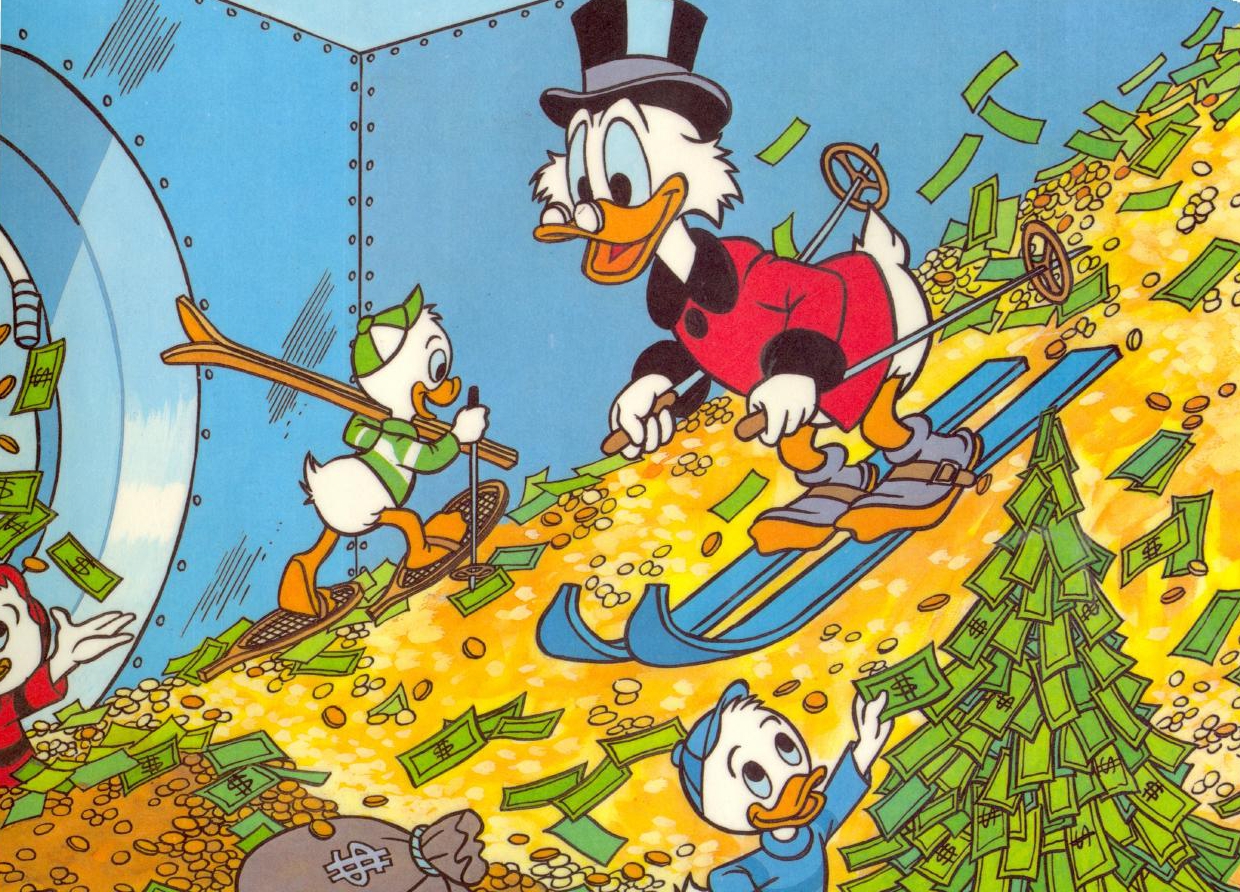 Milijardierius antinas, gimęs Škotijoje, pagarsėjęs nepaprastu šykštumu (kartą pešėsi su meška dėl 2 dolerių vertės medaus puodynės, niekada neaukoja labdarai, vis dar turi pirmą savo uždirbtą 10 centų monetą) . Turtus susikrovė iš lobių medžioklės ir kalnakasybos. Savo turtą laiko aukso monetų pavidalu. Kadangi aukso kaina per metus pakilo 30%, antino turtai pakilo iki 44,1 mlrd. JAV dolerių.